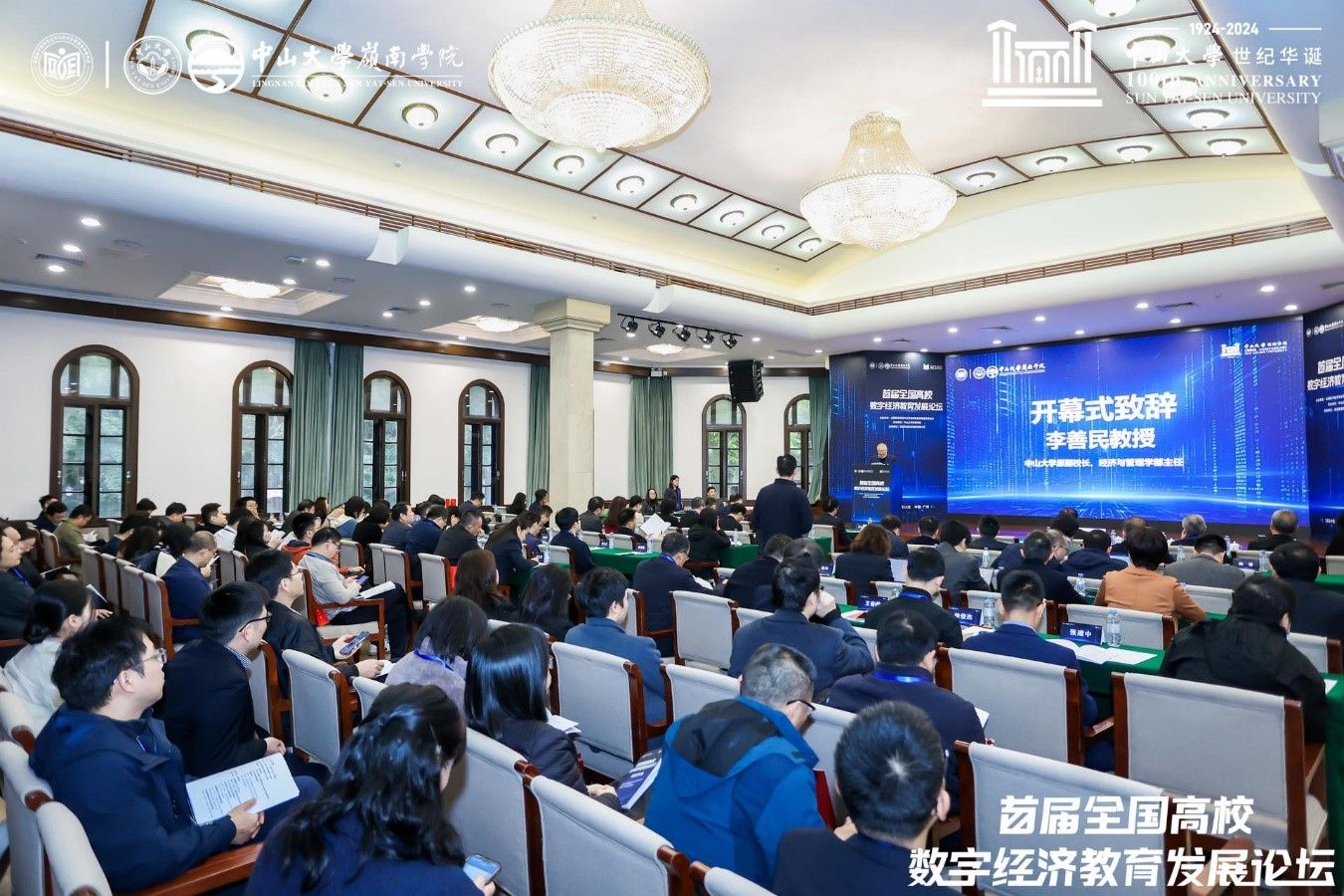 在“数字中国建设与数字经济人才培养”为主题的开幕论坛上,bat365在线中国登录入口原副校长、经济与管理学部主任李善民首先致辞,他代表bat365在线中国登录入口经济与管理学部向远道而来的专家学者表示热烈欢迎。李善民教授指出,在bat365在线中国登录入口世纪华诞和bat365在线中国登录入口经济学科建设100周年之际,首届全国高校数字经济教育发展论坛在bat365在线中国登录入口举办具有重要意义,希望本次论坛能够为全国各高校数字经济教育提供思想碰撞、交流合作的平台,探索科技创新与教育融合的新路径,为推动全国高校数字经济教育的快速发展贡献智慧和力量。