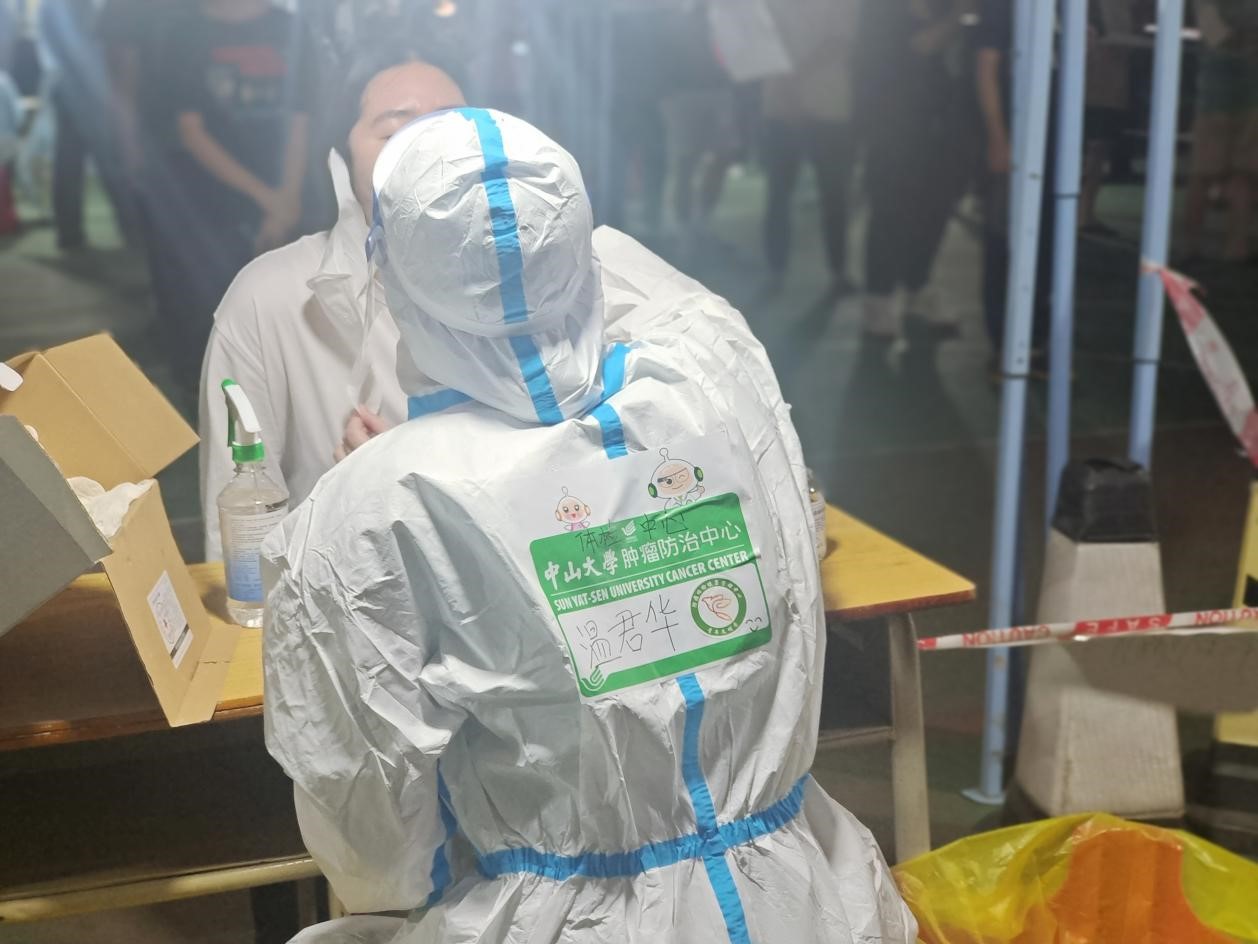 4月15日,中肿派出了150余人的核酸采样队员,他们在广州市白云区奋战了三天两夜。4月21日,中肿又派出了160余人的核酸采样支援队。
