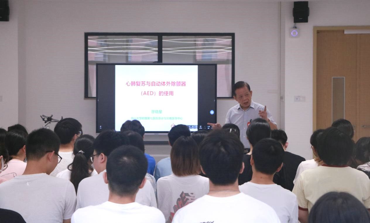 廖晓星教授讲授心肺复苏与自动体外除颤器(AED)的使用(来源:医学院 唐锦坤摄)