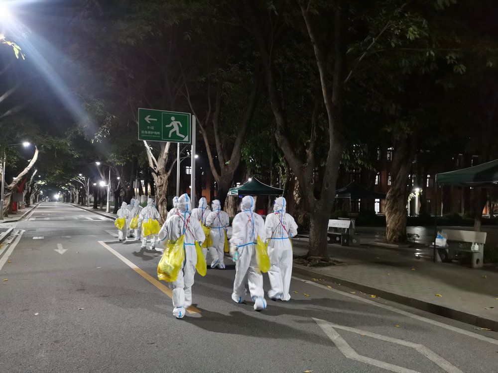 41位逸仙人接到任务后,克服交通困难,有的人走路、有的人骑自行车前往集合点,核酸采样队火速集结,增援学校疫情防控工作,大家马不停蹄直至凌晨1点,为学子们和教职工开展上门核酸采集和抗原测试。