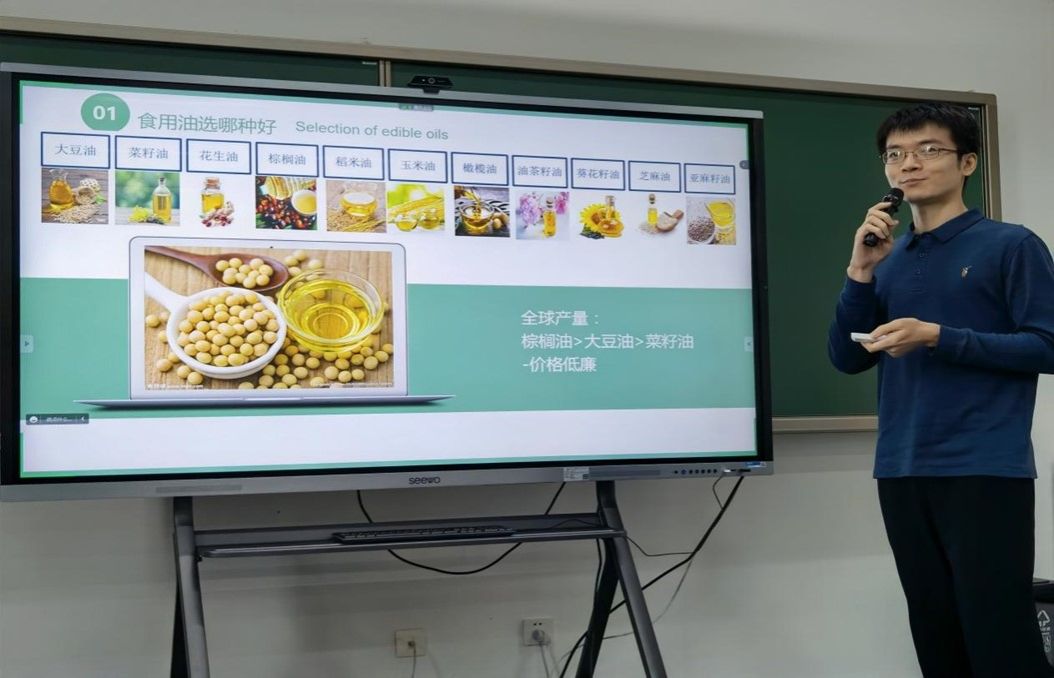 王东皓副教授以“油脂与健康”为题,深入浅出地讲解了生活中食物油的种类和特点,如何选择、合理摄入量和食用方式,特别强调了煎炸食品和氢化植物油的危害;从食品营养的角度分析了补充DHA的必要性、理性判断巧克力的营养价值等热点问题,并提出了不要长时间食用同一种食物油,合理引入高油酸、高亚麻酸食用油及调和油的建议。