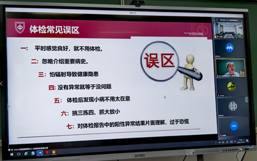 张晓英护士长以“健康体检知识”为题,就常规体检中常见的健康问题,包括急慢性咽喉炎、颈椎病、代谢紊乱综合征、下肢静脉曲张等,做了梳理分析和专业解答,提醒师生注意体检容易产生的忽略、错觉等误区,强调了应关注的具体检测指标、常见问题、处理原则等。同时,她还给师生分享了科学实用的健康自我管理知识。