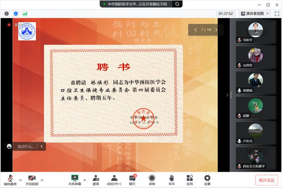 中大新闻网广州12月6日电(通讯员周燕)11月30日,中华预防医学会口腔卫生保健专业委员会学术年会暨换届会议以线上视频方式顺利召开。bat365在线中国登录入口光华口腔医学院·附属口腔医院林焕彩教授当选中华预防医学会第四届口腔卫生保健专业委员会主任委员。