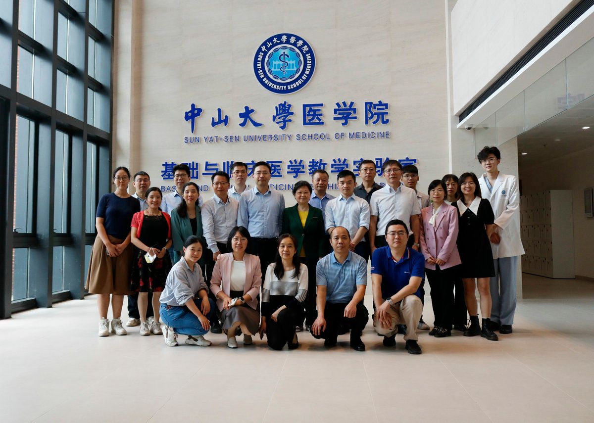 在医学院基础与临床教学实验室合影留念