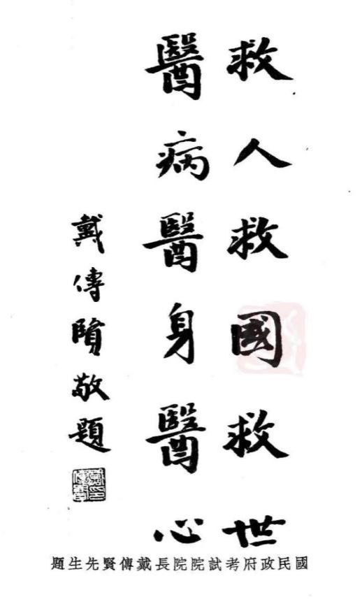 的确,在新文化运动前,对联的读法是从右读至左,但新文化运动后,随着白话文的问世,对联的读法又遵循从左向右的次序。但从对联撰写的平仄要求来讲,应该是仄起平回,也就是说上联最后一个字应是仄音,下联最后一个字应是平音。这副对联是戴校长所撰,按他的学识修养,应该懂得遵循对联撰写的平仄要求。我想,这幅对联上联是“救人救国救世”,下联是“医病医身医心”,符合对联仄起平回的要求。