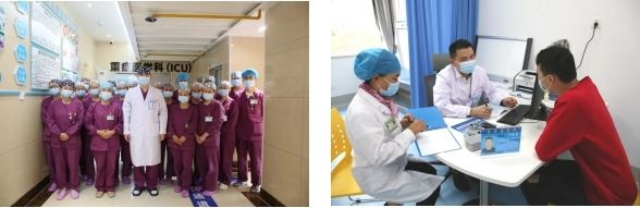 左:叶思康主任与科室人员合影 右:叶思康主任在门诊