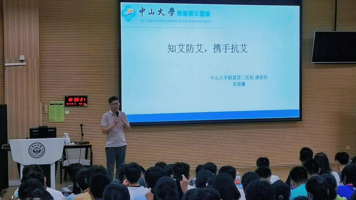 讲座中,黄湛镰不仅讲艾滋病,还由点到面、深入浅出地穿插讲解了传染病的危害、传染病的传播途径、针对不同传播途径的传染病应该如何进行预防及校园常见传染病的防控要点。