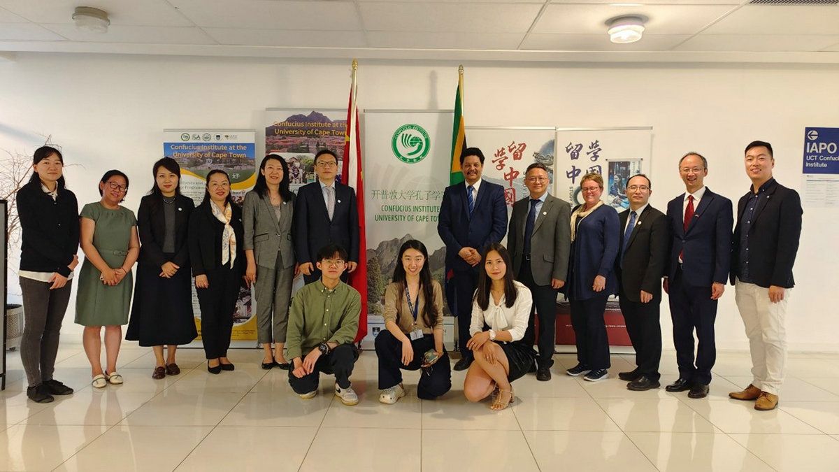会后,代表团一行访问了开普敦大学孔子学院,与孔子学院的公派教师、海外志愿者及我校外派的国际中文教育志愿者座谈,了解其在当地的工作生活情况。王帆副书记表示,感谢各位投身于国际中文教育事业,同时也希望大家在外派工作经历中获得成长与收获。