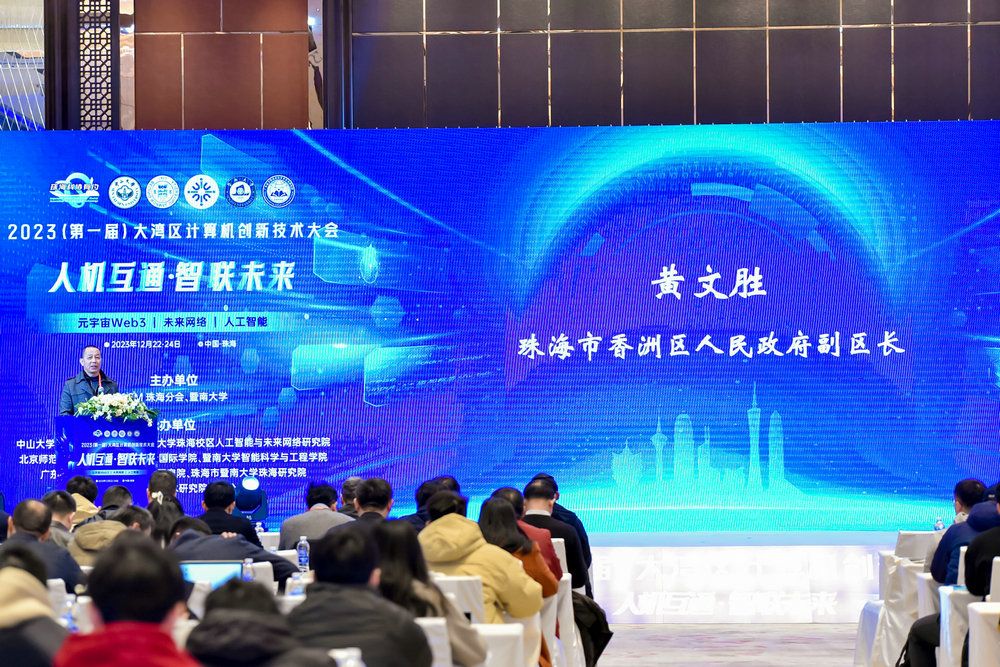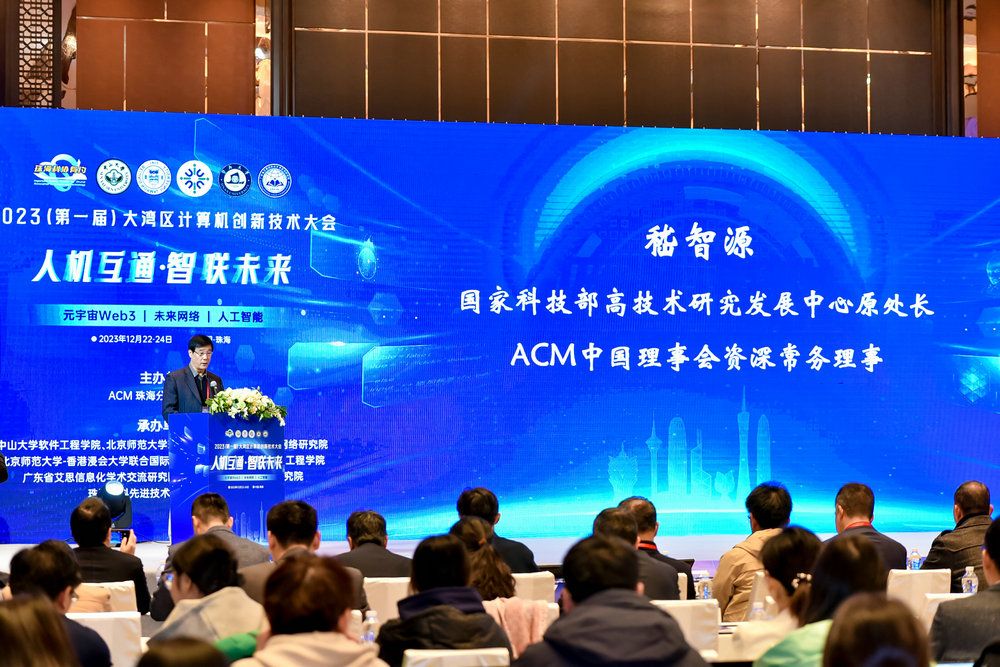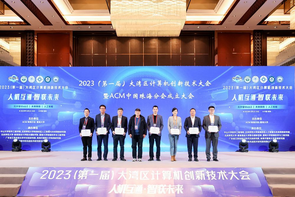 中大新闻网讯(通讯员彭晓、王宇琪)12月23-24日,2023(第一届)大湾区计算机创新技术大会暨ACM珠海分会成立大会在珠海市香洲区召开。本次大会由ACM珠海分会和暨南大学联合主办,bat365在线中国登录入口软件工程学院、北京师范大学珠海校区人工智能与未来网络研究院、北京师范大学-香港浸会大学联合国际学院、广东省艾思信息化学术交流研究院、珠海市暨南大学珠海研究院、珠海中科先进技术研究院有限公司共同承办。来自海内外计算机领域的院士专家,高等院校、科研院所、知名企业的参会代表共400余人集聚一堂,围绕元宇宙web3、未来网络和人工智能三个领域进行交流。