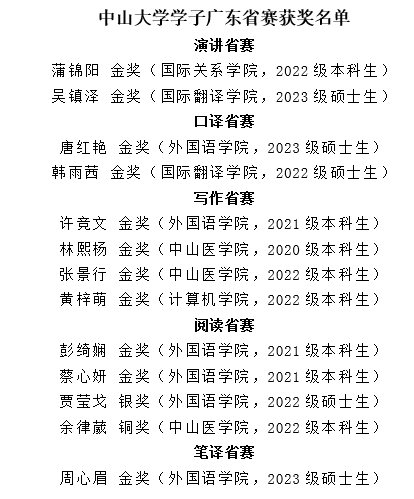 我校学子在2023“外研社·国才杯”“理解当代中国”全国大学生外语能力大赛英语组全国赛和广东省赛中获奖名单如下: