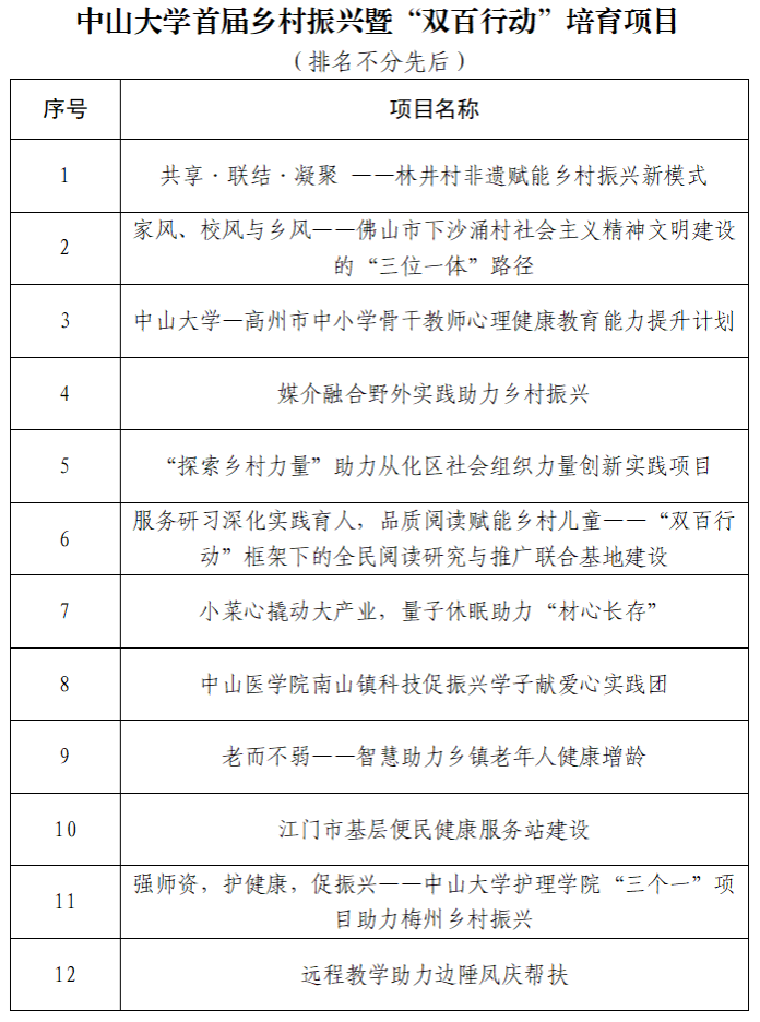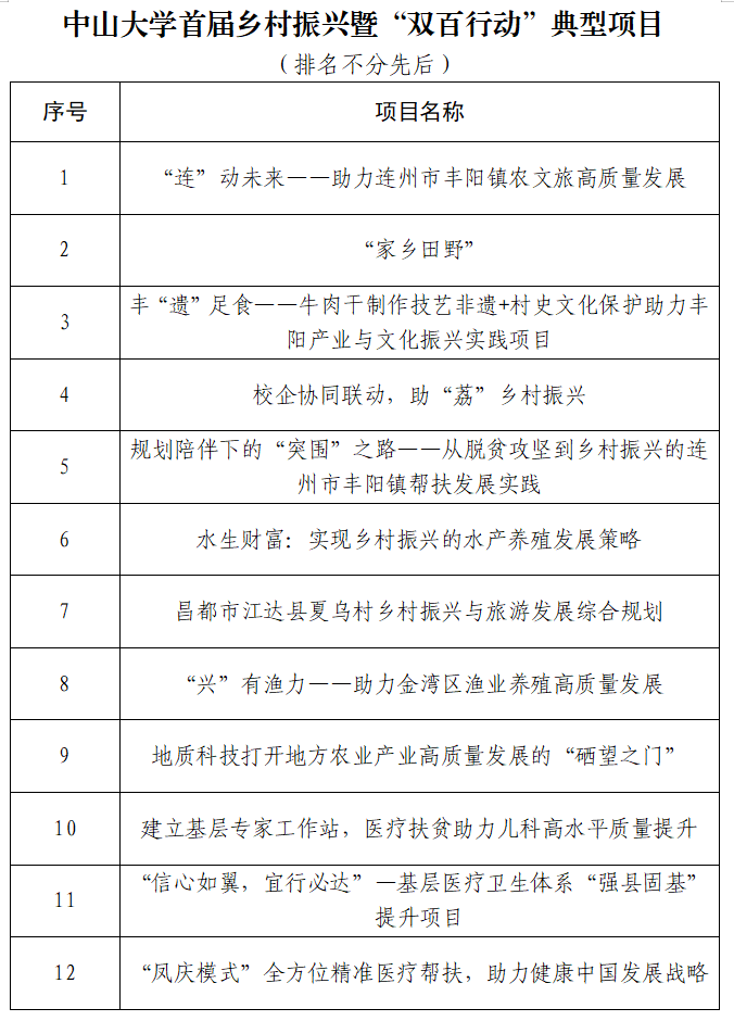 推选活动中,申报项目的负责人轮番登台,通过PPT、视频等充分展示了项目背景、进展情况及工作成效。由往届教育部直属高校精准帮扶典型项目获得者、学校职能部门、院系及附属医院代表共同组成的评审团,围绕“工作创新、社会效益、经济效益、育人成效”等四个方面,对项目进行现场打分。生命科学学院苏薇薇教授、地理科学与规划学院李郇教授、孙逸仙纪念医院陈广成医生等三位专家对参评项目作了总结点评,并提出了一系列针对性建议。经过综合评审,最终共有12个项目获评首届乡村振兴暨“双百行动”典型项目,其他相关项目及单位分别获评乡村振兴暨“双百行动”培育项目和优秀组织奖。