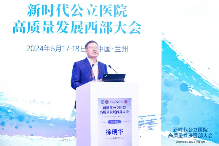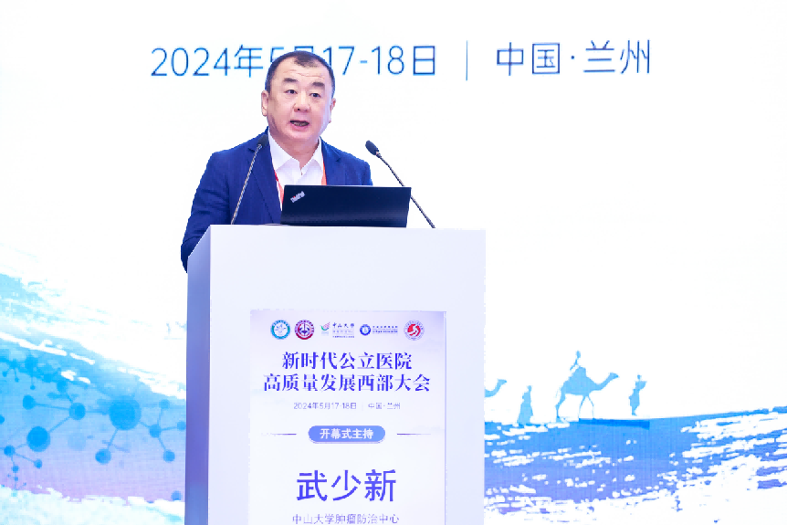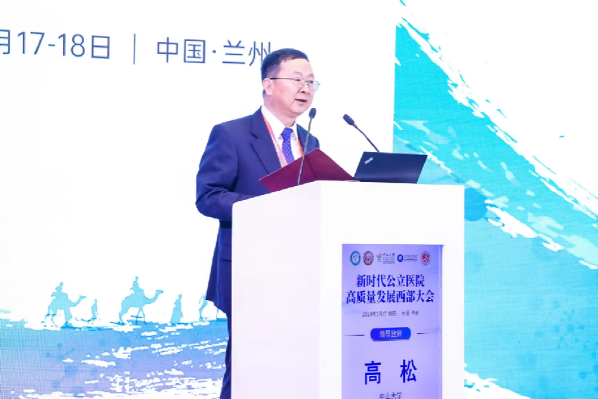 中大新闻网讯(通讯员陈鋆、赵现廷)为进一步发挥国家区域医疗中心辐射带动作用,助力西部地区医疗卫生事业高质量发展,5月18日,新时代公立医院高质量发展西部大会在甘肃兰州召开。大会聚焦西部地区公立医院高质量发展,全国数十家公立医院管理者及专家学者汇聚一堂,共同探讨公立医院发展方向和实践经验。中国科学院院士、bat365在线中国登录入口校长高松出席大会开幕式并致辞。大会开幕式由bat365在线中国登录入口肿瘤防治中心党委书记武少新主持。