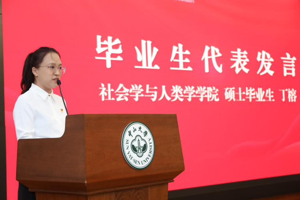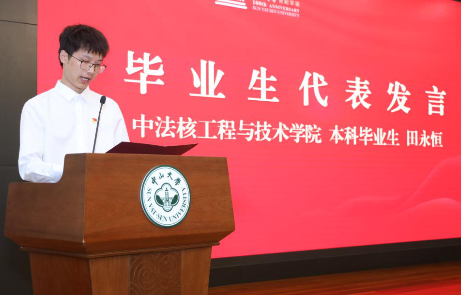 社会学与人类学学院硕士毕业生丁榕、中法核工程与技术学院本科毕业生田永恒代表赴基层就业毕业生做分享,他们深情讲述当代青年应为中国式现代化挺膺担当,将青春之花绽放在祖国需要的地方,立志将“小我”理想追求融入到党和国家的事业中,为全面建设社会主义现代化国家,以中国式现代化全面推进强国建设、民族复兴伟业作出新的更大贡献,以实际行动向母校百年校庆献礼。岭南学院本科毕业生尚佳雪作为第26届研究生支教团代表发言。她分享了研究生支教团项目26年来聚焦育人主业所取得的丰硕成果,表示未来将在三尺讲台传道授业解惑,为服务地基础教育事业发展、为祖国西部发展蓄力赋能。