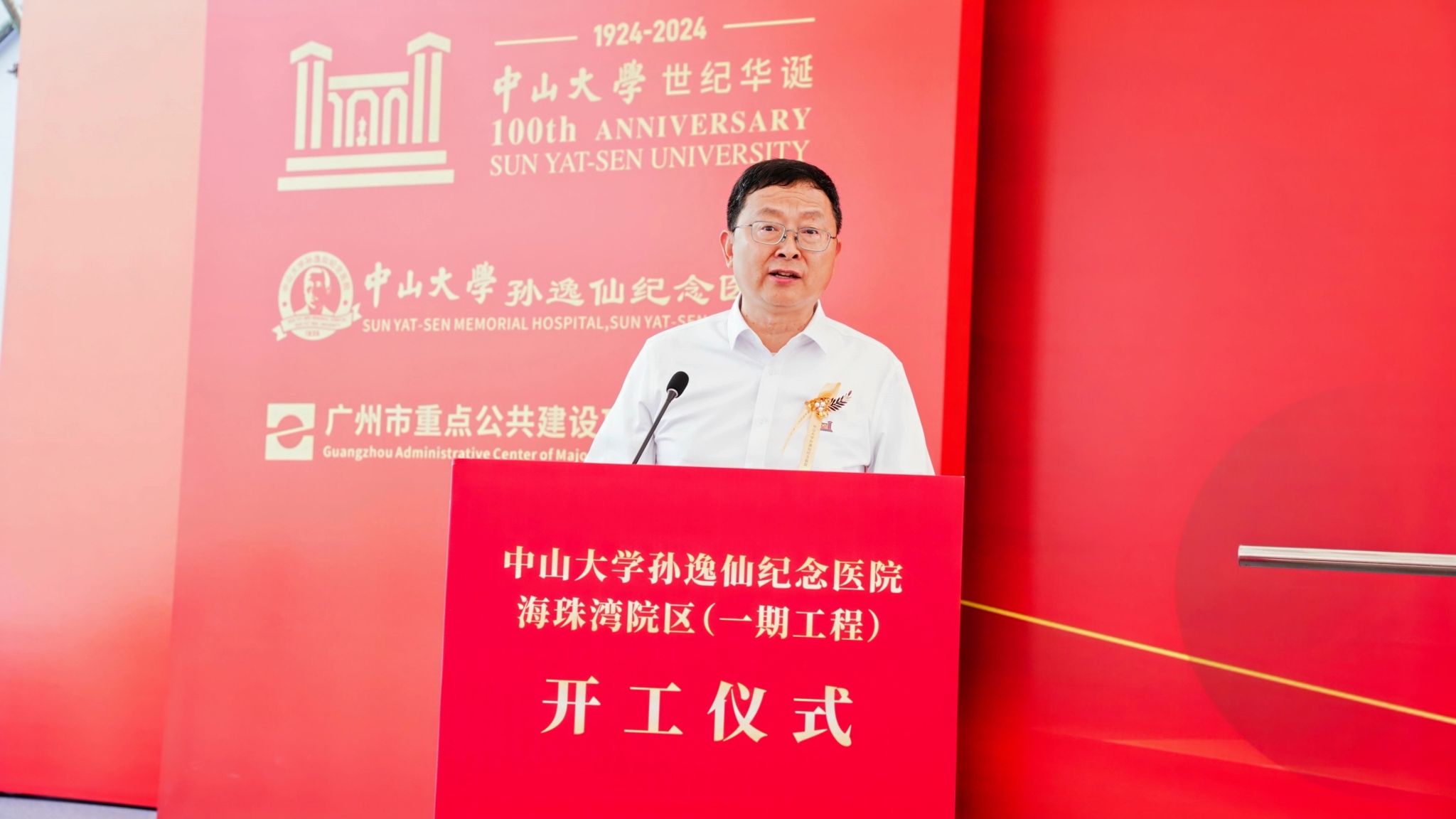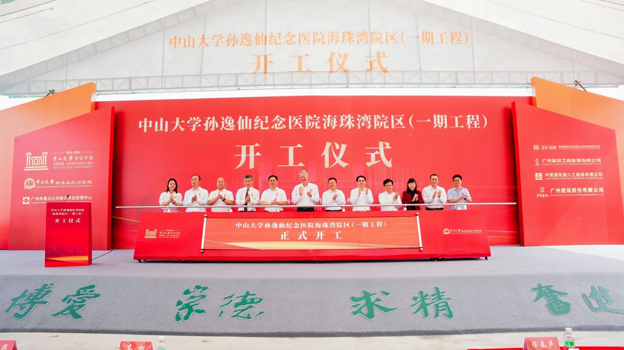 广东省卫生健康委员会党组成员、副主任汪洪滨,广州市副市长赖志鸿,广州市重点公共建设项目管理中心党组书记、主任邓新勇,项目施工方代表、中建八局副总经理、华南分局局长李伟,项目监理方代表、广州建筑工程监理有限公司总经理李薇娜分别致辞,对工程的顺利启动表示祝贺。