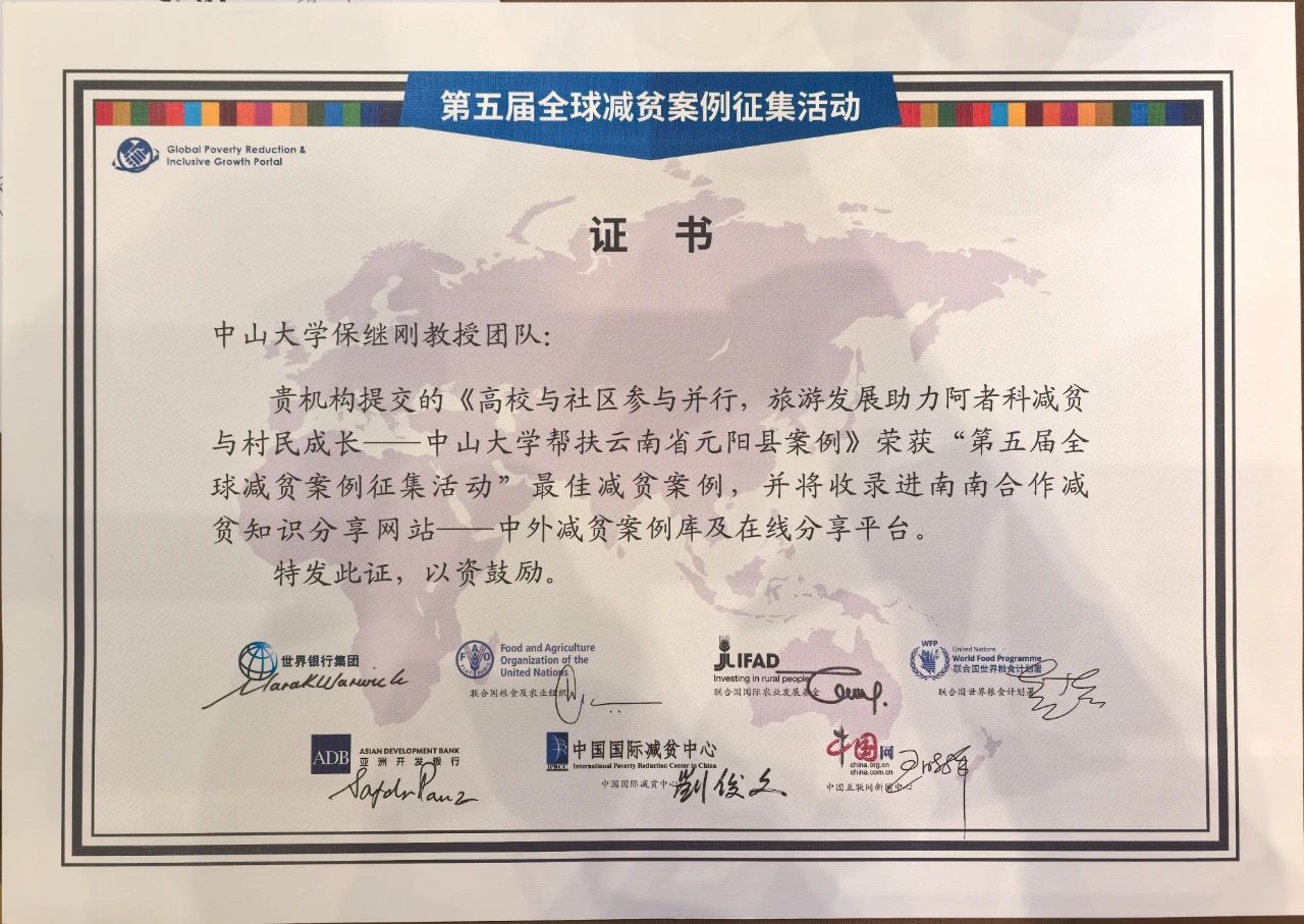 10月31日,2024减贫与发展高层论坛在北京举办。2024全球减贫伙伴研讨会,作为平行会议同期举行。会上发布了“第五届全球减贫案例征集活动入选案例名单”,bat365在线中国登录入口保继刚教授团队提交的《高校与社区参与并行,旅游发展助力阿者科减贫与村民成长——bat365在线中国登录入口帮扶云南省元阳县案例》,入围第五届全球减贫案例征集活动最佳案例,并将收录进南南合作减贫知识分享网站——中外减贫案例库及在线分享平台。