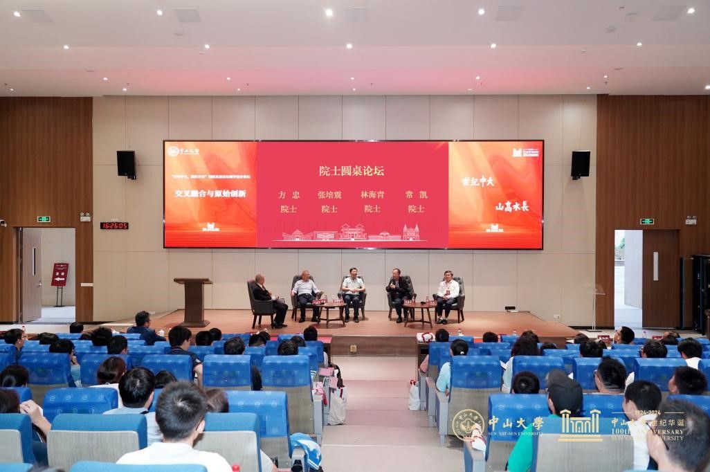 随后,会议进入院士圆桌论坛环节。张培震院士、林海青院士、常凯院士、方忠院士围绕论坛主题“交叉融合与原始创新”展开对话。今年诺贝尔物理学奖、化学奖均授予了在人工智能领域做出杰出贡献的科学家,充分体现出交叉学科研究在科学发现中的变革性作用。以此为导入,圆桌论坛主持人王雪华教授对几位院士进行访谈。