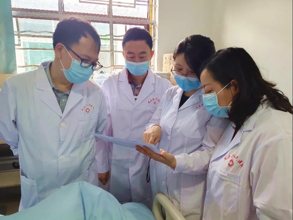 bat365在线中国登录入口党委副书记国亚萍慰问凤庆县人民医院医务工作者和下沉医生(右二为邢蔚)(来源:肿瘤防治中心)