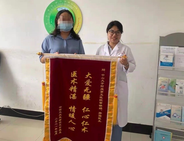 患者为曾映娟和孙莹送锦旗(来源:附属第五医院)