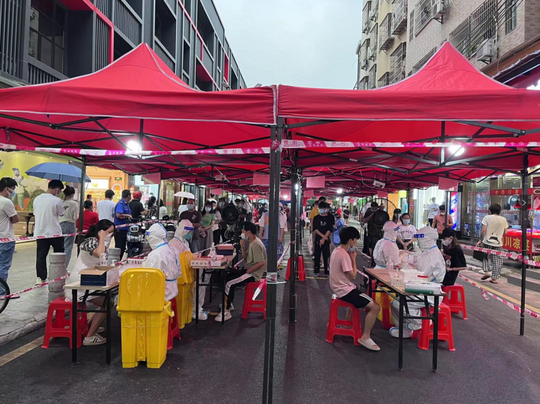 莲溪社区采样点,队员们在忙碌工作(来源:附属第六医院)