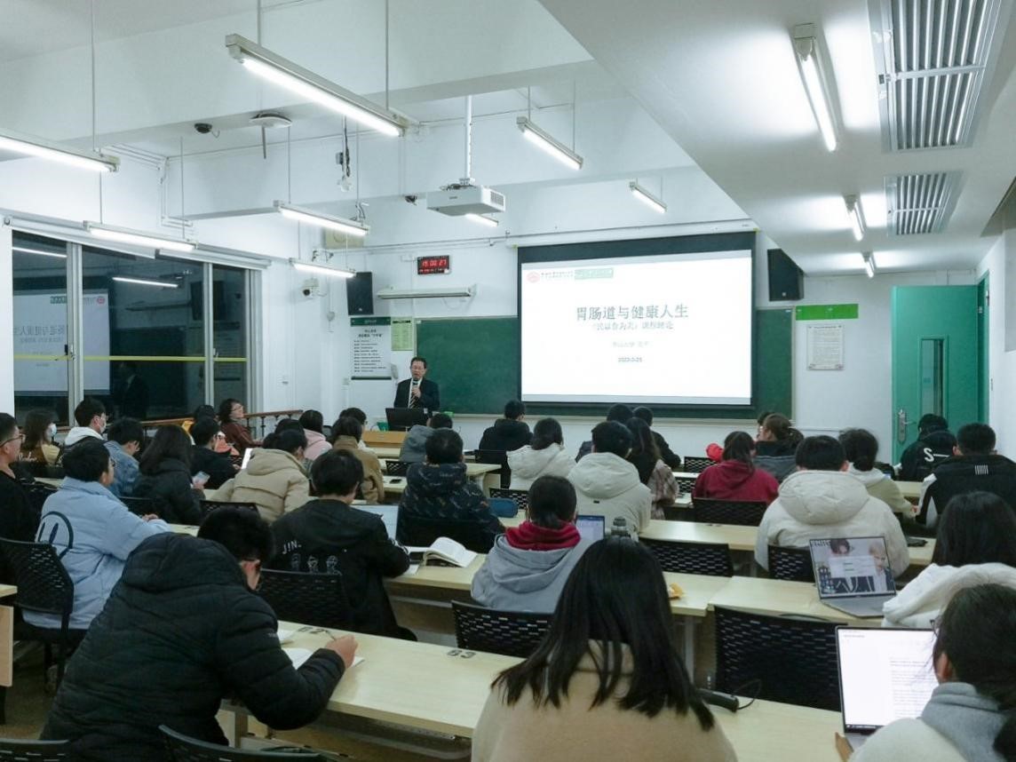 中大新闻网广州3月14日电(通讯员郅敏、刘涛、李森茂)近日,我校副校长、附属第六医院胃肠外科首席专家兰平教授深入文理医融合通识教学一线课堂,为涵盖本科一至三年级的跨院系、不同专业背景学生,讲授了一堂深入浅出、丰富有趣的通识课——《胃肠道与健康人生》,这也是我校公选通识课《胃肠疾病与健康》的开课绪论。