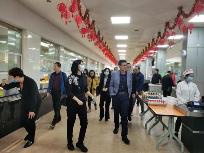 中大新闻网1月30日电(通讯员马秀珍)1月27日,学校副校长、总务部主任杨东华在广州校区检查寒假期间食堂餐饮供应、校园物业服务等后勤保障工作情况,并走访慰问值守假期保障一线的员工,向大家送去新春祝福和诚挚感谢。总务部后勤处晁炎、周海涛,产业集团梅成达、邹丹、区瑞珍等负责同志参加检查和慰问工作。