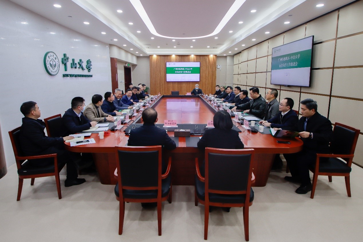 中大新闻网2月17日广州电(记者吴立坚)2月14日上午,我校与广州市海珠区区校合作工作推进会议在广州校区南校园中山楼召开。双方围绕附属学校建设、科技成果转化、大学生社会实践基地、附属医院建设、疫情防控等方面的合作进行了深入交流。学校党委书记陈春声、校长高松,海珠区委书记蔡澍、区长毛松柏出席会议。会议由高松主持。