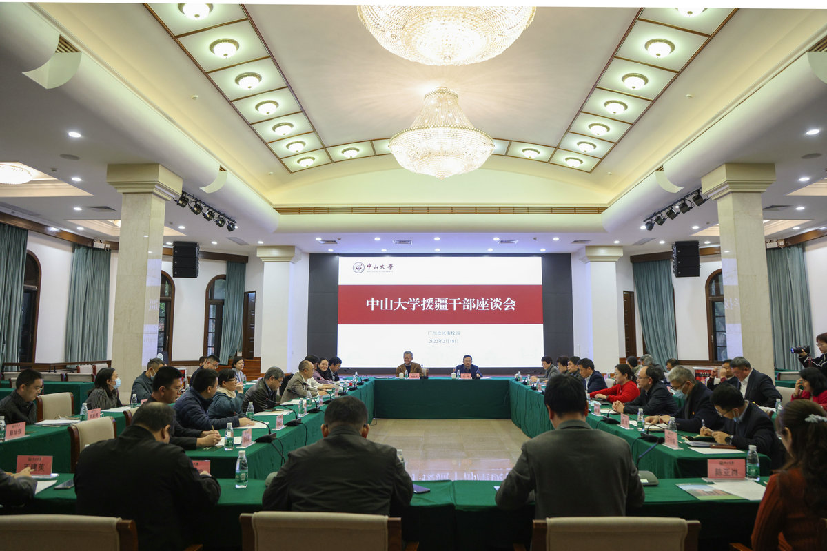 中大新闻网广州2月20日电(记者李建平) 2月18日下午,我校在广州校区南校园怀士堂召开援疆干部座谈会。校党委书记陈春声教授、校长高松院士,广东省2022年“组团式”援疆医疗队成员及附属喀什医院增派医疗队成员,新疆大学旅游学院援疆干部,教育部第十批中期轮换援疆干部,历任援疆干部代表,援疆干部所在单位负责人出席会议。会议由党委副书记国亚萍主持。