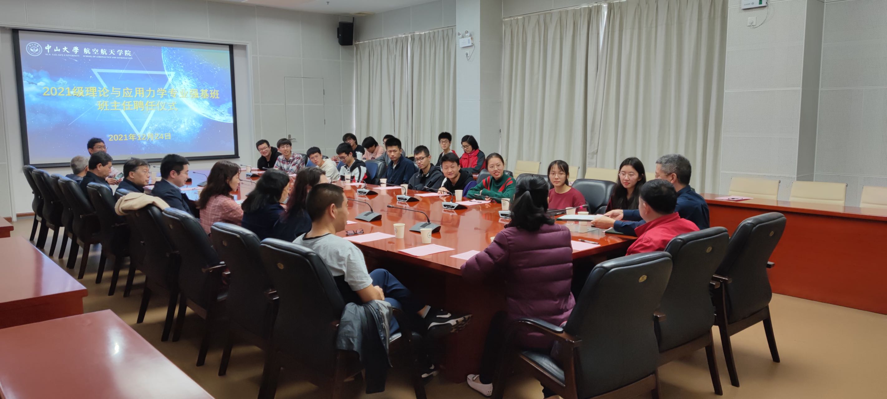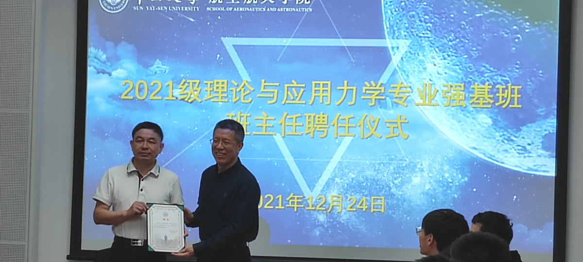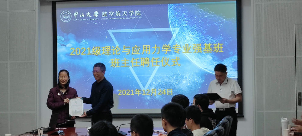 中大新闻网1月1日广州电(通讯员黄松键)近日,bat365在线中国登录入口航空航天学院在南校园梁銶琚堂第一会议室举行2021级理论与应用力学专业强基班班主任聘任仪式,聘任bat365在线中国登录入口党委常委、副校长刘济科教授为2021级理论与应用力学专业强基班班主任,罗莹莹副教授为执行班主任。航空航天学院党委书记温光浩主持仪式。教务部计划处处长黄林冲教授,航空航天学院党委副书记刘芳,院长助理、力学系系主任黄建亮教授,力学系前系主任詹杰民教授等11位学院教师代表和全体强基班学生参加聘任仪式。