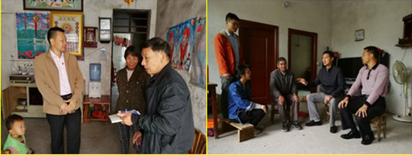 左图:古添雄(左二)到村民家中走访 右图:古添雄(右一)到村民家中走访(来源:校工会)