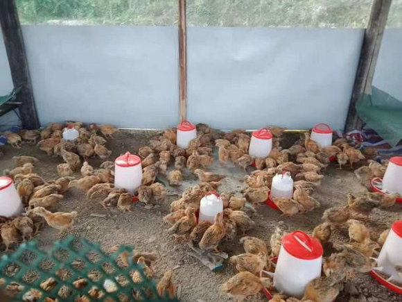吴伟军在帮扶下养殖的鸡鸭鹅(来源:校工会)