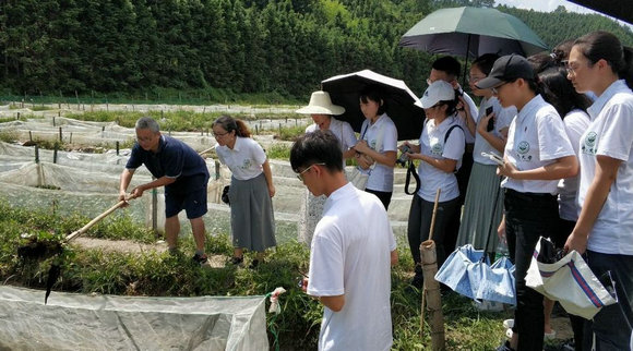 曾毅斌为青马班学生介绍水蛭养殖项目(来源:校工会)