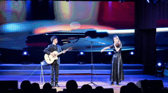 时光如水,理想如诗,青春如歌,吉他小提琴二重奏《如歌》用婉转音符与观众产生共情,音乐像是划过夜晚的流星,碰撞了充满回忆的青春。