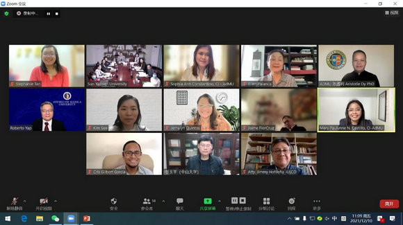 在菲律宾亚典耀大学孔子学院的会议中,外方院长Dr. Palanca Huang首先作了工作报告。2021年,孔子学院各项工作稳步推进,开展了线上汉语教学及文化课程;组织了20多场公共论坛及线上研讨会;通过举办本土教师在线培训、建立中英双语双专业学士项目、菲律宾汉语国际教育硕士项目及国际汉语教师资格证考试与培训等业务,大力推动菲律宾本土汉语教师的培养;同期开展中菲关系课题研究,并拍摄系列纪录片《苏禄与中国:中菲关系的历史与现在》等,均取得喜人成绩。