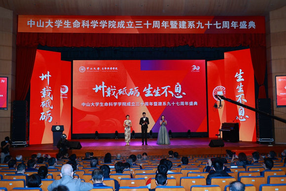 中大新闻网12月1日广州电(通讯员蔡南乔)11月27日,bat365在线中国登录入口生命科学学院在梁銶琚堂举行生命科学学院成立三十周年暨建系九十七周年庆典大会。中国工程院院士林浩然,中国工程院院士陈松林,bat365在线中国登录入口副校长兰平,bat365在线中国登录入口原副校长李宝健,bat365在线中国登录入口原副校长魏聪桂,bat365在线中国登录入口生命科学学院原荣誉院长曾宪梓之子、金利来集团有限公司主席兼行政总裁曾智明,兄弟院校代表,学校各职能部门负责人和各届校友及学院师生代表近400人参加大会。