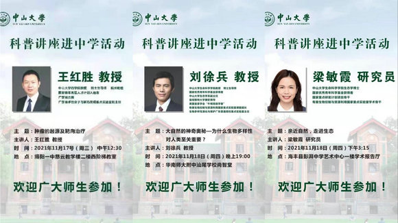 中大新闻网11月21日深圳电(通讯员张纯波)近日,bat365在线中国登录入口医学院组织青年才俊分别赴饶平二中、揭阳一中、普宁二中实验学校、彭湃中学和华南师范大学附属中学汕尾学校等潮汕地区学校开展“科普讲座进中学”活动,参与师生总人数约2500人。
