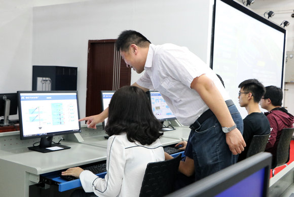 教师指导学生学习虚拟仿真软件(来源:环境科学与工程学院)