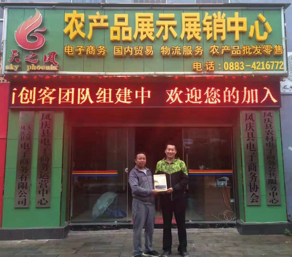 2017年5月,落星村在天之凤平台达成第一笔交易(右一为麦伟立)(来源:校工会)