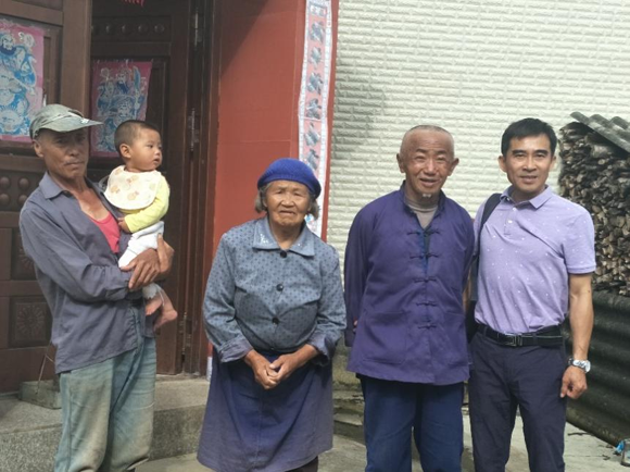 郭兴勇(右一)入户走访落星村村民赵永福家(来源:校工会)