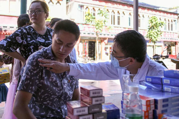 因为气候和生活习惯原因,骨性关节炎、类风湿性关节炎是当地的高发病之一,骨科医生李玉希连喝水的功夫都顾不上,一上午接待了80来个病人。