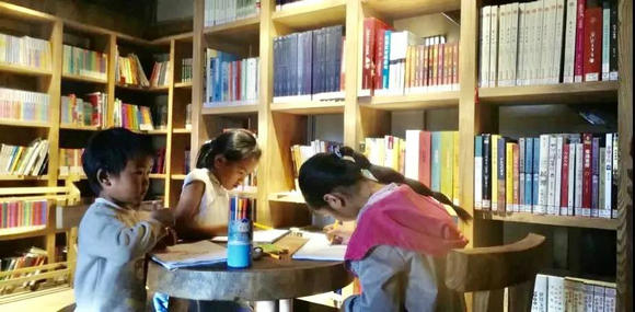 阿者科的孩童在村图书馆学习(来源:旅游学院)