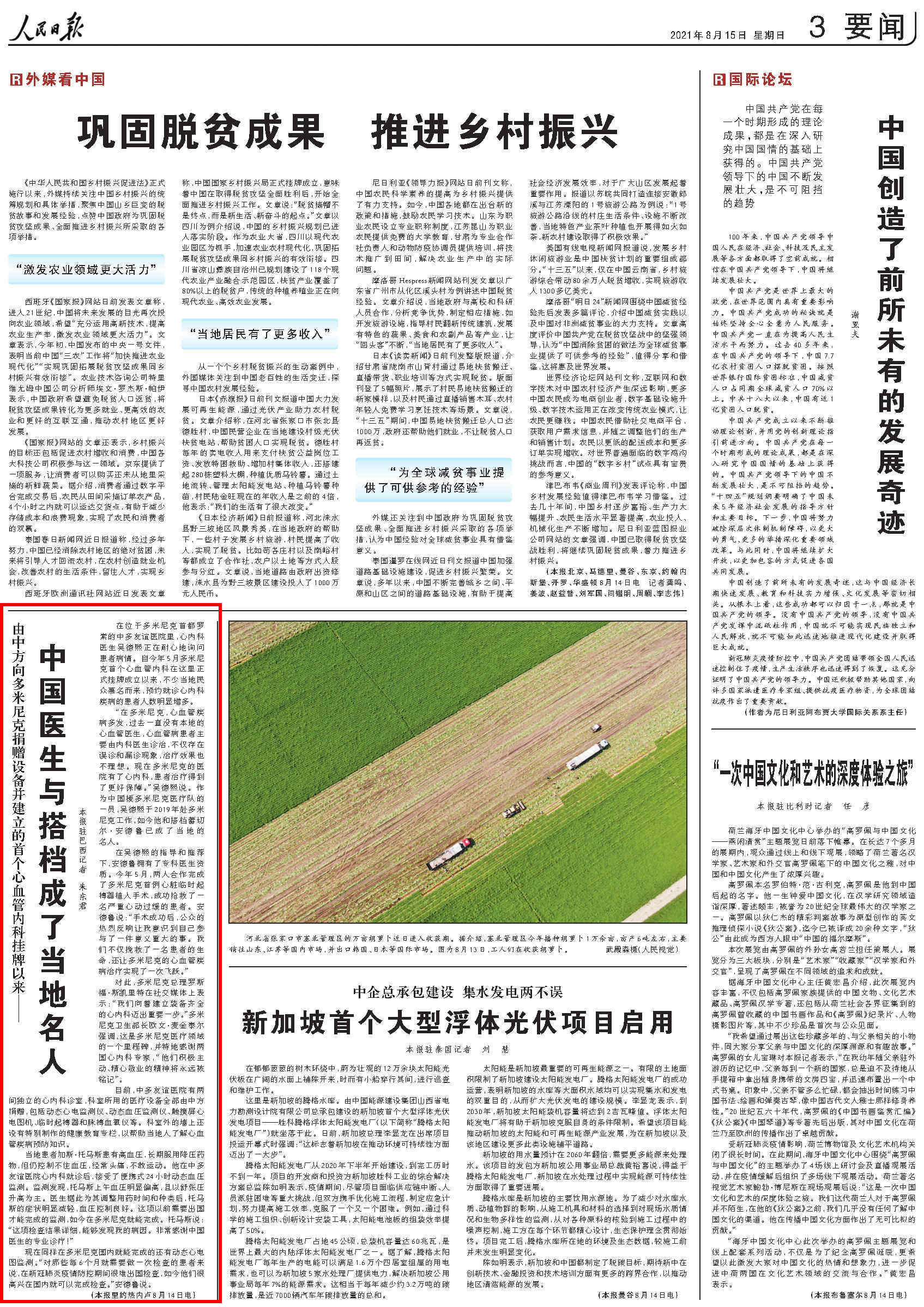《人民日报》报道我校附属第一医院吴德熙医生在多米尼克救治心血管病人的事迹(来源:附属第一医院)
