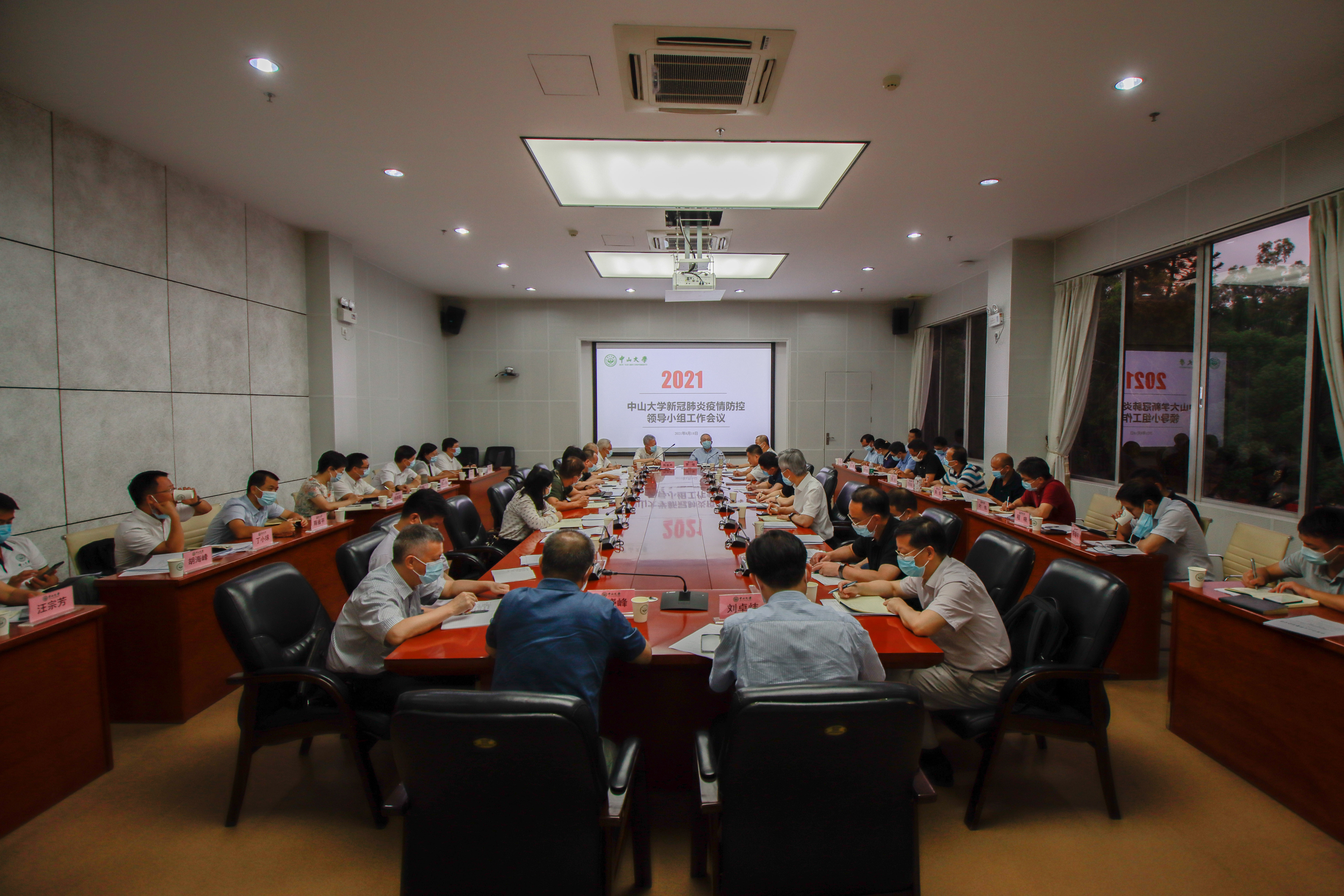 中大新闻网广州8月19日电(记者 孙琛)8月18日,我校在广州校区南校园召开新冠肺炎疫情防控领导小组工作会议,深入学习贯彻习近平总书记关于疫情防控的重要讲话和重要指示批示精神,传达上级有关做好学校疫情防控工作的会议精神和秋季学期学校疫情防控工作的通知精神,研究部署学校下一步工作。校党委书记陈春声,校党委副书记、校长罗俊,全体在校校领导出席会议。会议由校党委副书记余敏斌主持。