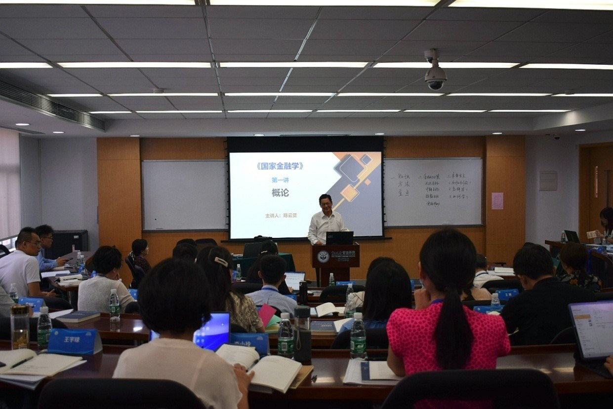 当天的授课及讨论环节分别由黄新飞教授和易行健教授主持,陈云贤教授主讲《国家金融学概论》以及《国家金融顶层布局》。在《国家金融学概论》课程中,陈云贤教授着重提出了“国家金融学”这一新概念。他认为,在现代金融系统的框架下,国家金融行为对于一国金融体系和市场的建设发展起到决定性作用。当下,现代金融理论滞后于实践发展,具有国家金融视野的人才缺乏,需要在金融理论创新推进和金融学科教育多方面提升。在《国家金融顶层布局》课程中,陈云贤教授介绍了现代金融体系的演变和发展,从国家金融定位入手,分析一国金融体系的要素、一国财政政策和货币政策配合协调以及监管框架的设计等经济金融的顶层设计问题。