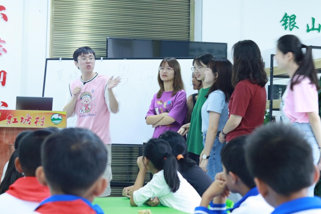 “同学们在红塘村农民讲习所为50名小学生带来为期4天的支教活动,课程设置以英语启蒙课为主,还有绘画、科学实验、德育、舞蹈、歌唱等特色课程,提升山区小学生综合素质,为他们的成长成才插上梦想的翅膀。