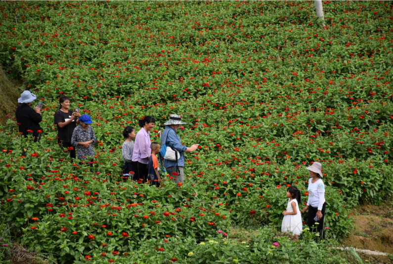 参加红塘村高原生态金丝皇菊种植基地开园仪式后合影(来源:国际翻译学院)