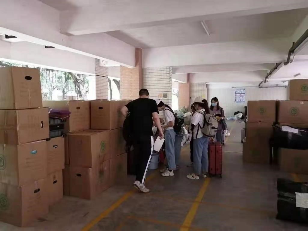 搬迁工作前,由辅导员老师谢金华组织团委、学生会同学完成搬迁物资采购分发工作,统一租赁车辆,组建志愿者团队,协助行李的搬运和大巴的承运工作。