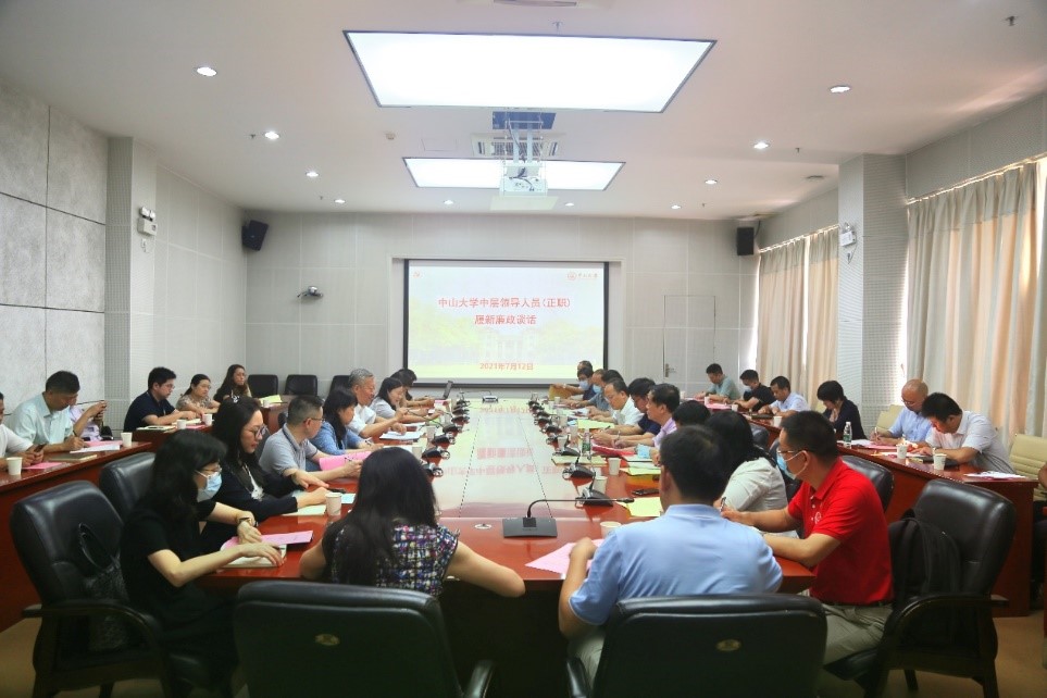 中大新闻网讯(通讯员徐颖)为深入落实全面从严治党党委主体责任和纪委监督责任,进一步推进领导干部落实“一岗双责”要求,7月12日上午,校党委书记陈春声与34位新任职(含提任、续任、转任)中层正职领导干部开展集体履新廉政谈话。