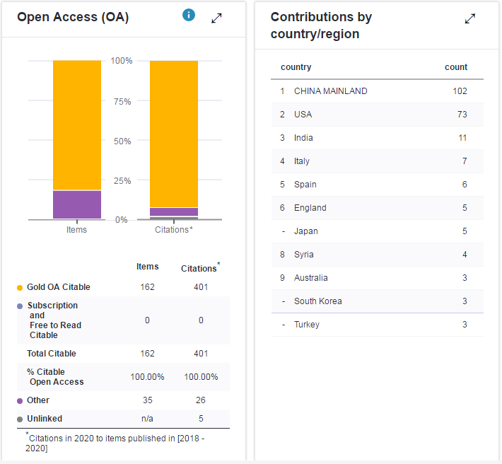2020年论文引用地区分布(数据来源于Clarivate官网)(来源:附属第六医院)