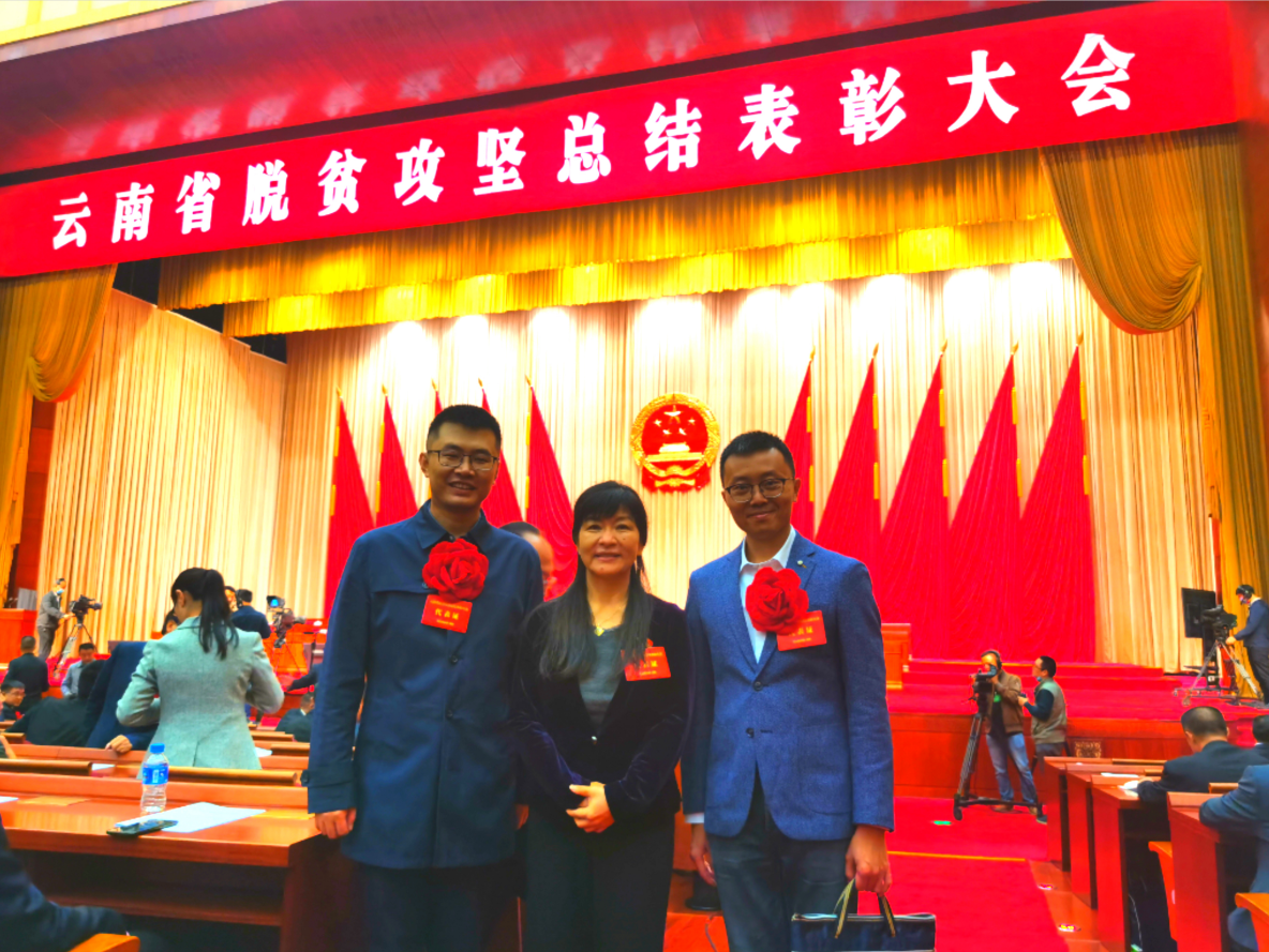 我校王克(左一)、蓝澍德(右一)获得“云南省脱贫攻坚先进个人”称号(来源:校工会)