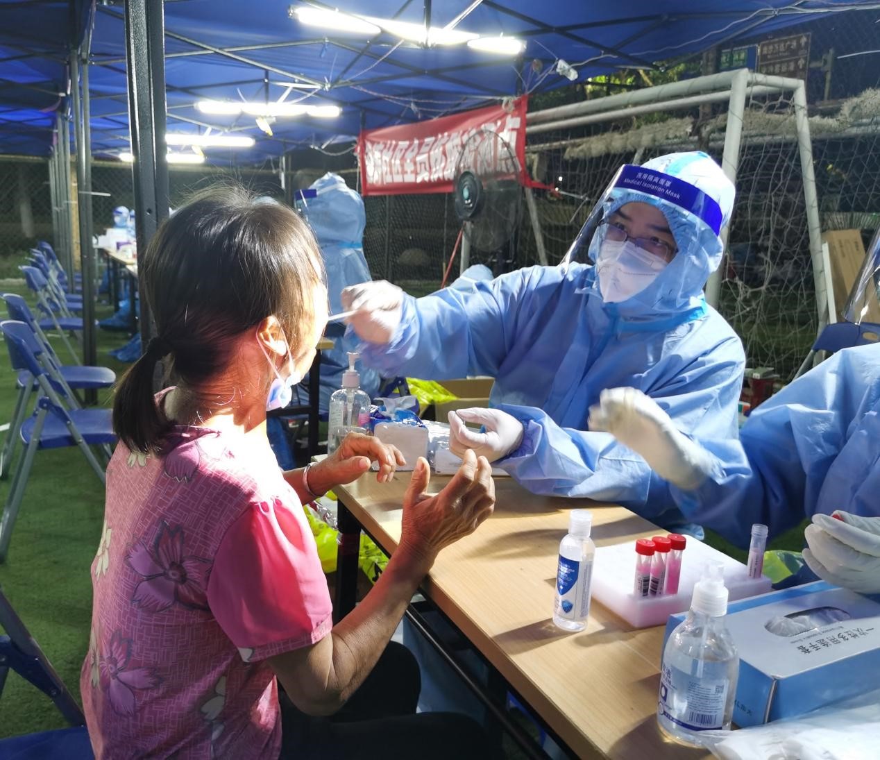 “当天下午接到任务,就知道要通宵了,我们已做好一切准备!” 钟新华护士长带着148名队员于6月5日下午抵达南沙在13个采集点通宵达旦,奋战到第二天早上。“居民们也在通宵排队,要把人民群众生命安全和身体健康放在首位,做到应检尽检,不检测完最后一个居民,我们就不撤退!”